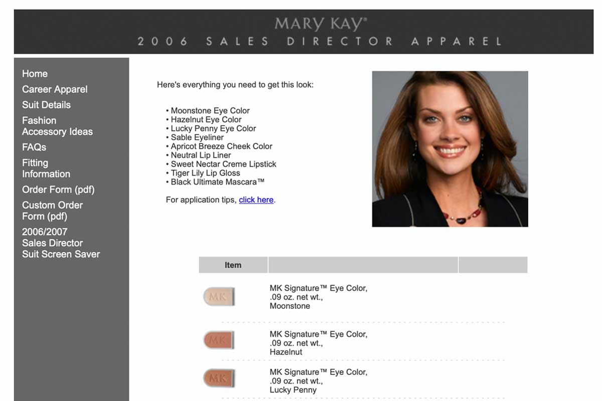 Execute a multi-page animated website to showcase the yearly release of the Representative Sales fashion line. This was a sales channel internal to the down-line field salesforce, as Mary Kay representatives. 2 versions of this site were created, one in English, the other in Spanish.