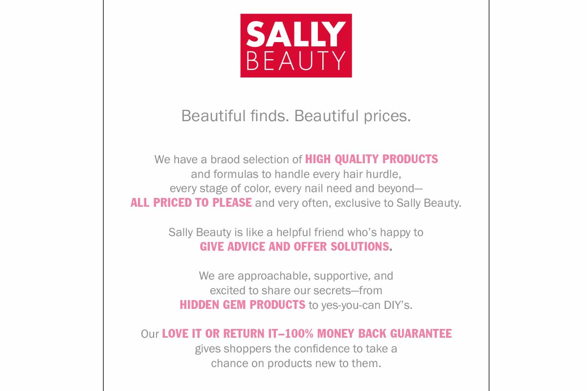 Develop a new identity, and logos for the transition from Sally Beauty Supply, to, SALLY BEAUTY, a modern representation of an iconic Brand in the beauty industry market-space. All aspects of font, framework, color, and logo development were explored (multiple rounds, multiple iterations).